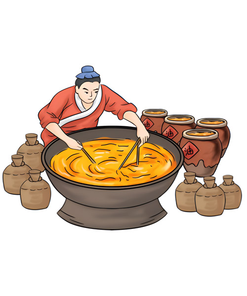 • 漂洗后的芝麻,以鐵鍋碳火慢炒至香味溢出。其中炒芝麻的手法、火候及加料工藝等,都以獨特的秘訣形式由師徒間代代傳承。